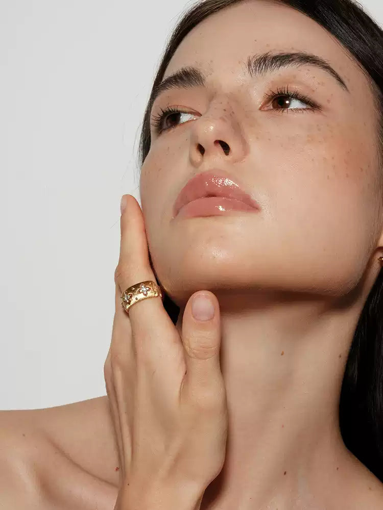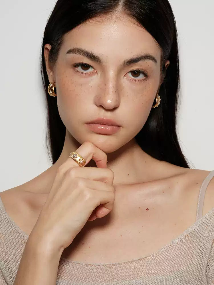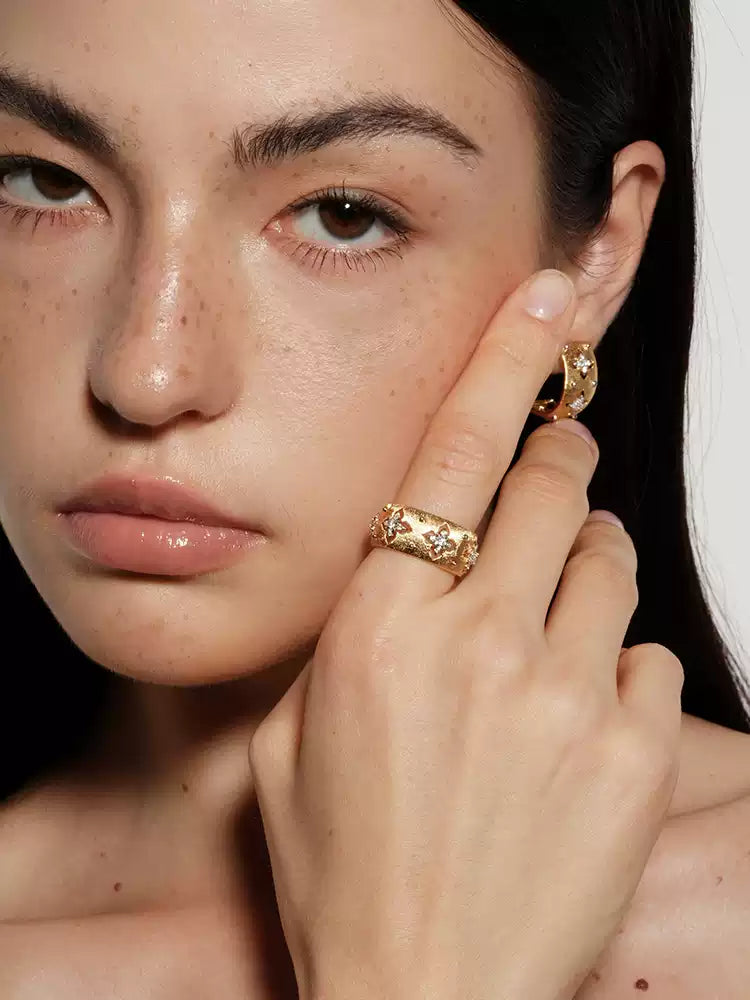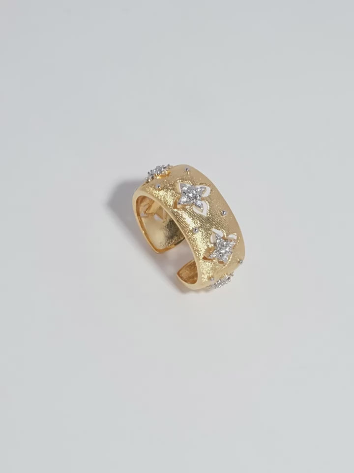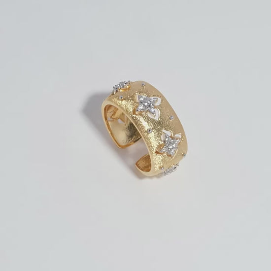 Engraved Flower Four-Leaf Clover Diamond Ring