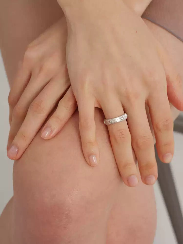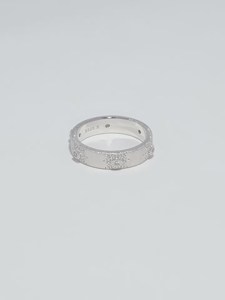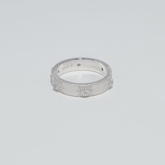 S925 pure silver brushed handcrafted retro sunflower diamond-encrusted texture ring