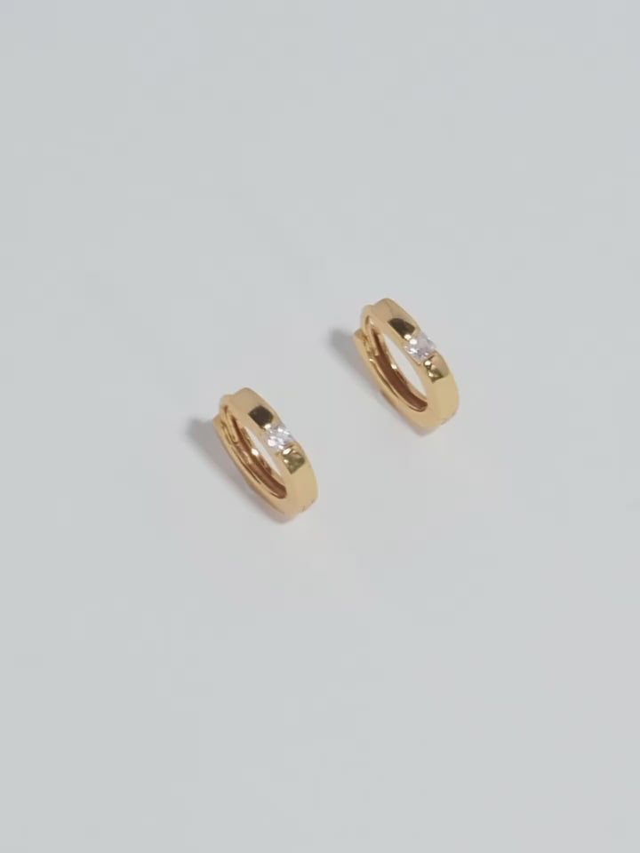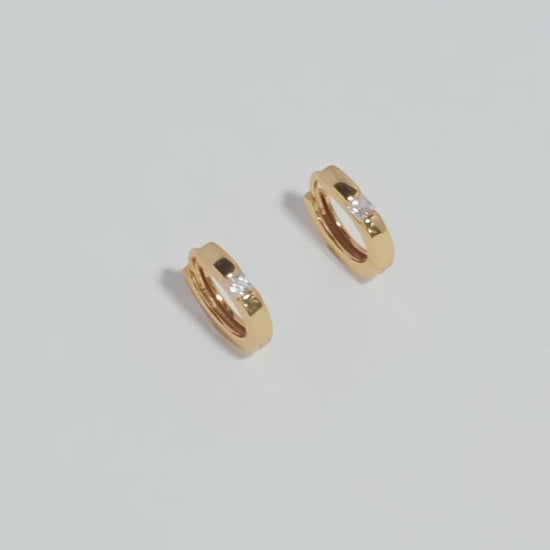 S925 pure silver round diamond zirconium gold ear hoop earrings