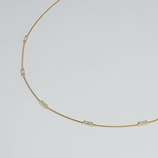 S925 pure silver thin strip square diamond exquisite collar necklace